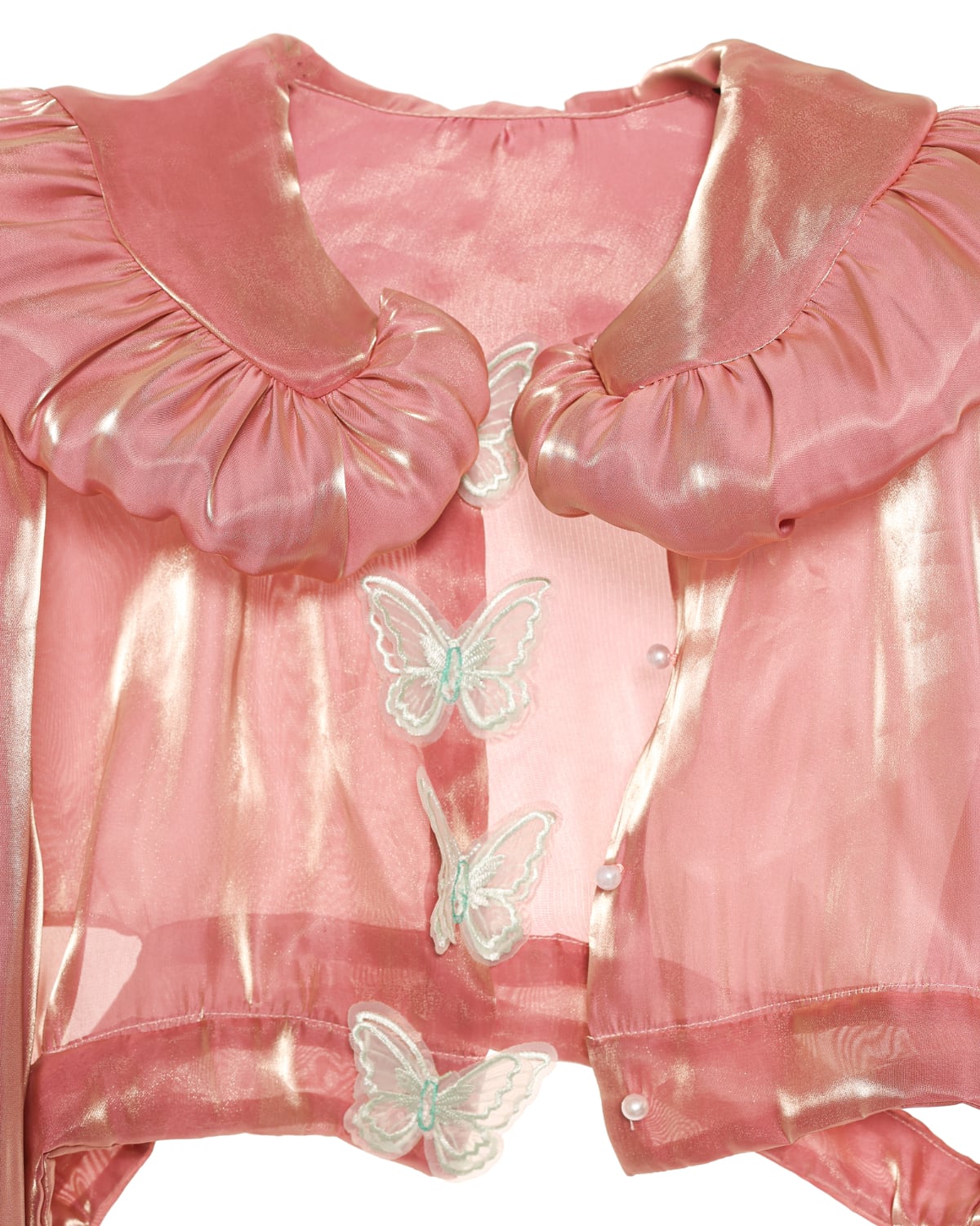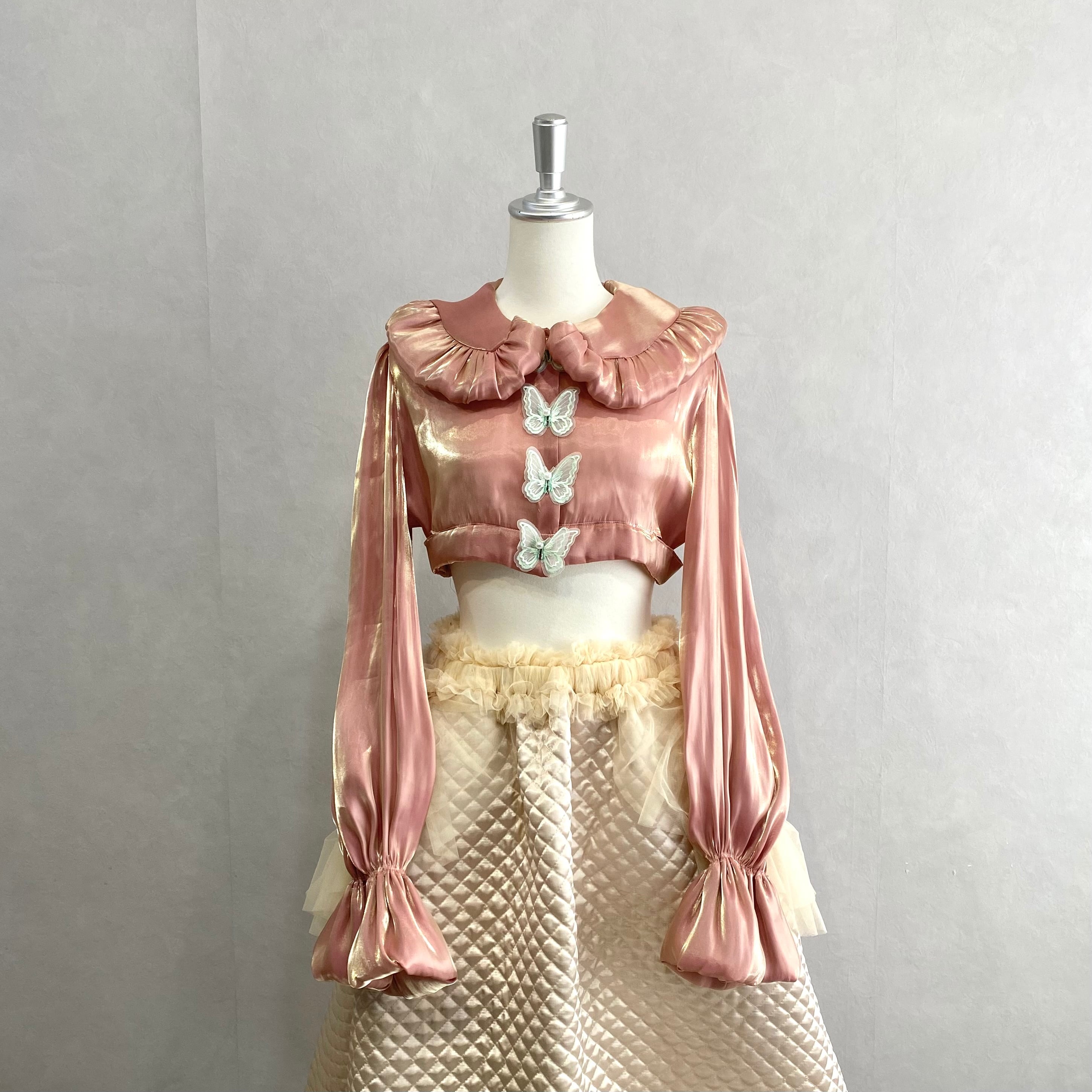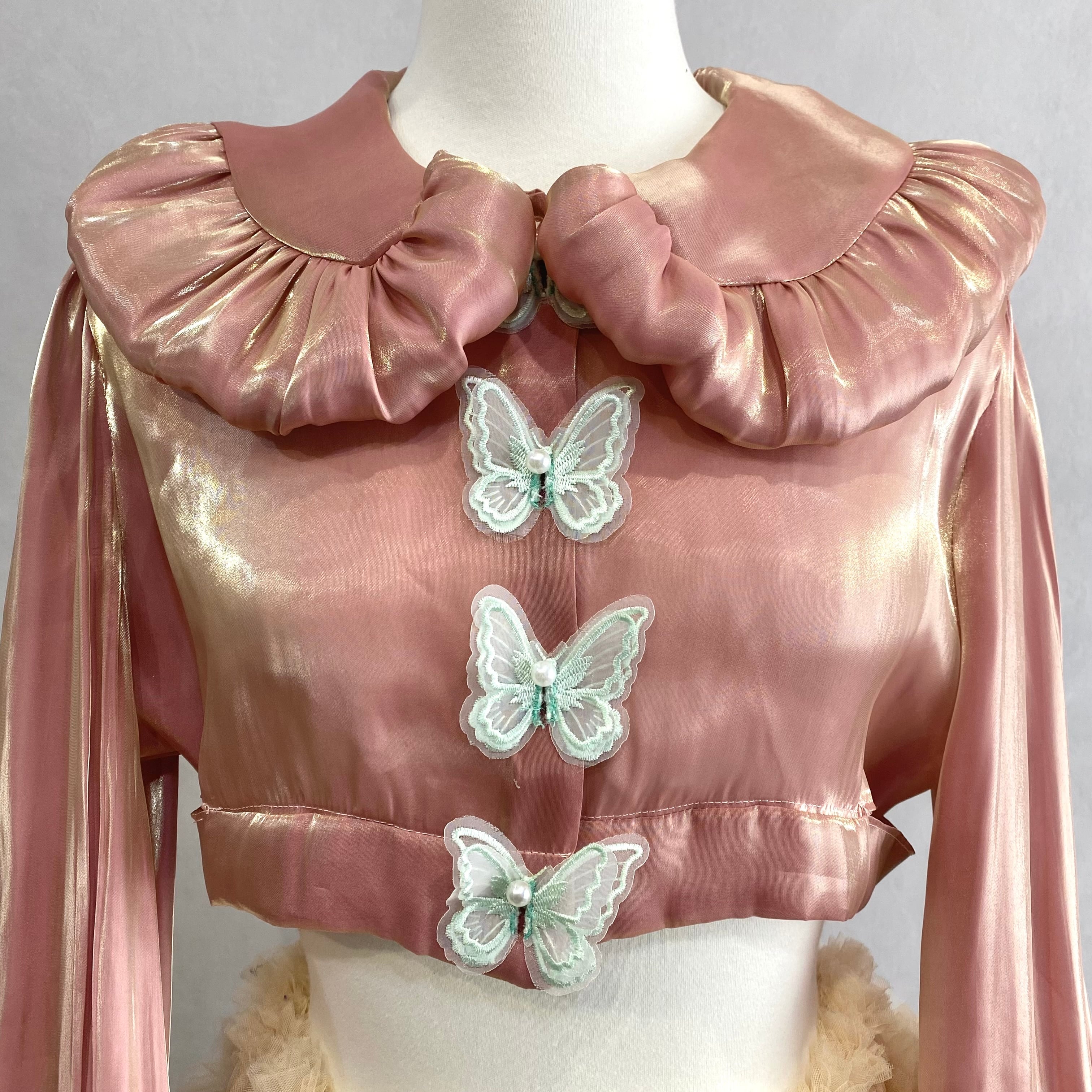 フロント蝶刺繍レースの胴体がボタンホールになって、