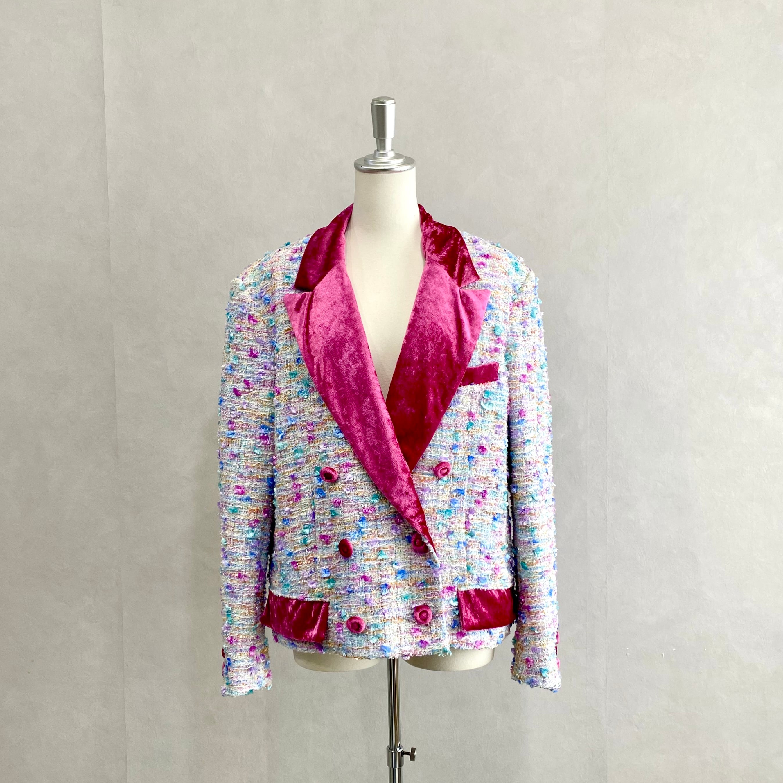 ファンシーツイードのダブルジャケット。