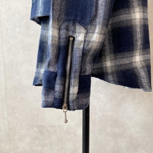 ライダースデザインをオーバーサイズなネルシャツとドッキングさせたユニークなデザイン。