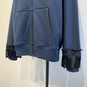 フリンジがフードと袖にふんだんに使われたデザインのパーカーです。