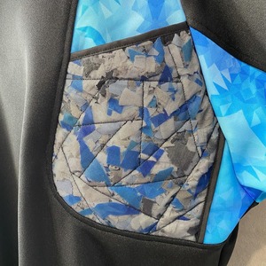 キルティングのような技法で製作したカクレミのオリジナリティが光るディティールです。