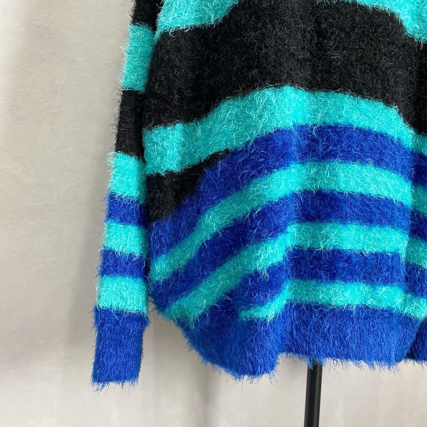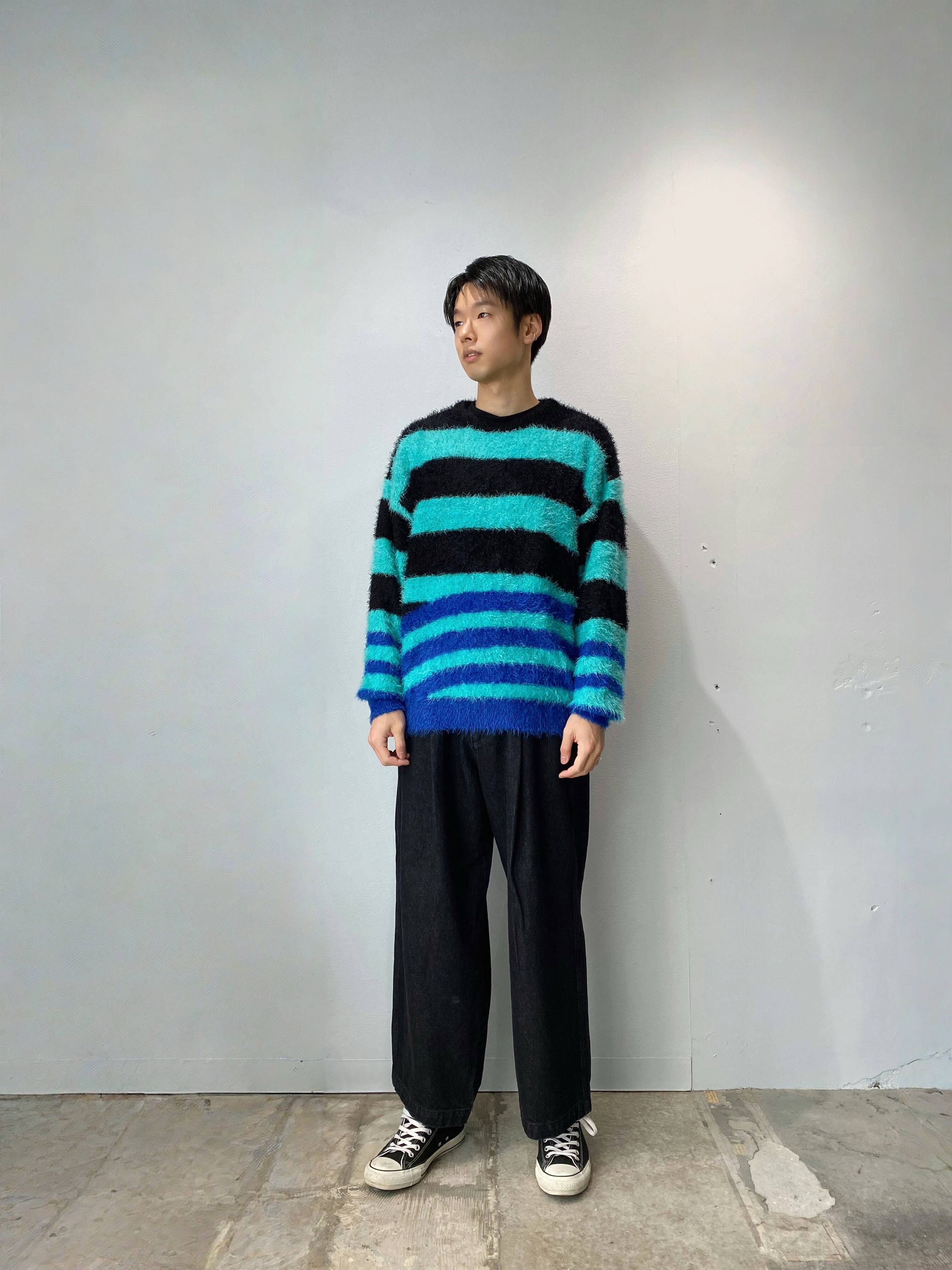 毛足の長いシャギー糸を使ったオーバーサイズのボーダーニット